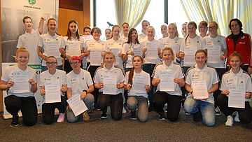 Auch die ehemalige Nationalspielerin und Olympiasiegerin Annike Krahn ließ es sich nicht nehmen, den jungen Trainerinnen persönlich zu gratulieren. FLVW-Geschäftsführer Wilfried Busch verwies bereits auf den nächsten Lehrgang: Dieser wird Anfang April wieder kostenfrei im SportCentrum Kamen•Kaiserau für junge Frauen im Alter zwischen 15 und 18 Jahren angeboten. Alle Informationen zum Lehrgang und zur Anmeldung finden Sie auf der FLVW.de-Themenseite JUNIOR COACH. Im rechten Seitenrand finden Sie zudem ein Video von DFB-TV.