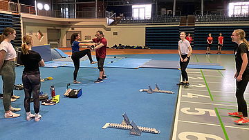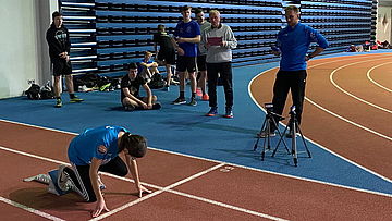 Ihnen wurde ein interessantes Programm präsentiert: So bot Michel Striewe (Bielefeld) zwei verschiedene Zugänge zum anspruchsvollen Hürdenlauf an, Tapio Linnemöller (Minden) ließ nach einer Anlaufschulung weite Sprünge in die Sandgrube folgen, Andre Meyer (Paderborn) schulte zunächst den Kugelstoß, dann mit Schaumstoffröhren den Speerwurf, und Klaus Brand (Detmold) zeigte zunächst Schwungbein und Kopf als Steuerungselemente zum Hochsprung, um dann, unterstützt von Justus Stahlberg (Lage), elektronisch gemessene Zeiten über 20 Meter und 60 Meter „fliegend“ zu ermöglichen.
